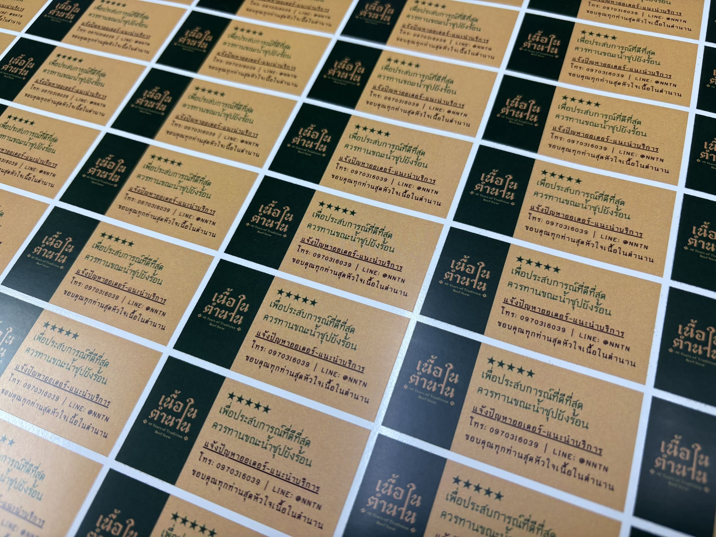 - ขนาดและการไดคัท : รูปทรงซับซ้อน หรือ ขนาดมาตรฐานสติ๊กเกอร์ติดสินค้า ที่ใหญ่ ย่อมมีราคาสูงกว่า