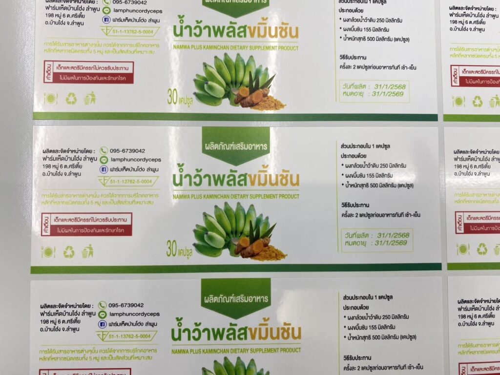 ทั้งนี้ ป้ายสติ๊กเกอร์ติดขวดน้ำ หรือ สติ๊กเกอร์ติดขวด ยังสามารถออกแบบเพื่อใส่ข้อมูลด้านความปลอดภัยและมาตรฐานการผลิต เช่น อย. ฮาลาล หรือเครื่องหมาย GMP ทำให้ลูกค้ามั่นใจในคุณภาพและความปลอดภัยของสินค้าได้มากขึ้น ยิ่งถ้าคุณสามารถโชว์ ตัวอย่างสติ๊กเกอร์ติดขวดน้ํา ให้ลูกค้าได้เห็นรายละเอียดก่อนผลิตจริง ก็จะสร้างความเชื่อมั่นและความพึงพอใจให้กับลูกค้าได้อย่างสูงสุด